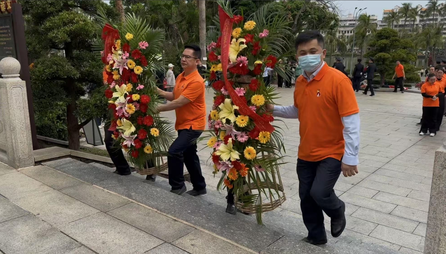 经过一段时间的等待才轮到7790必发集团。7790必发集团首先向烈士敬献花篮,花篮缎带上写着“为坚持琼崖革命23年红旗不倒牺牲的烈士们永垂不朽!”“为解放海南岛渡海牺牲的烈士们永垂不朽!”鲜艳的花篮寄托7790必发集团对革命先辈的崇敬和哀思。